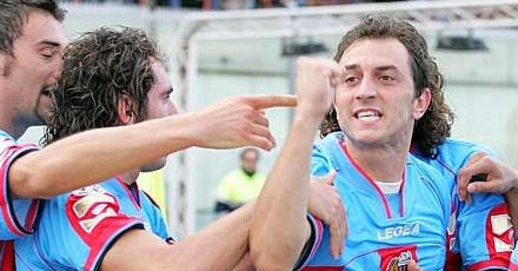 - Catania scorer kampens første mål allerede etter 10 minutter ved Gionatha Spinesi. Spinesi styrte ballen direkte i mål etter et fint innlegg fra venstrekanten. Spørsmålet er om ikke Spinesi sto offside da ballen ble spilt.